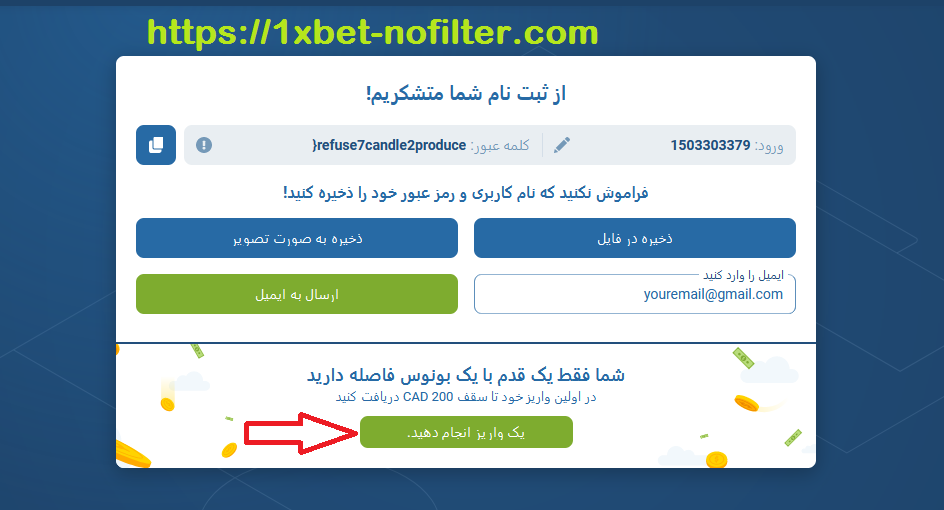 مراحل ثبت نام در وان ایکس بت از روش ایمیل :