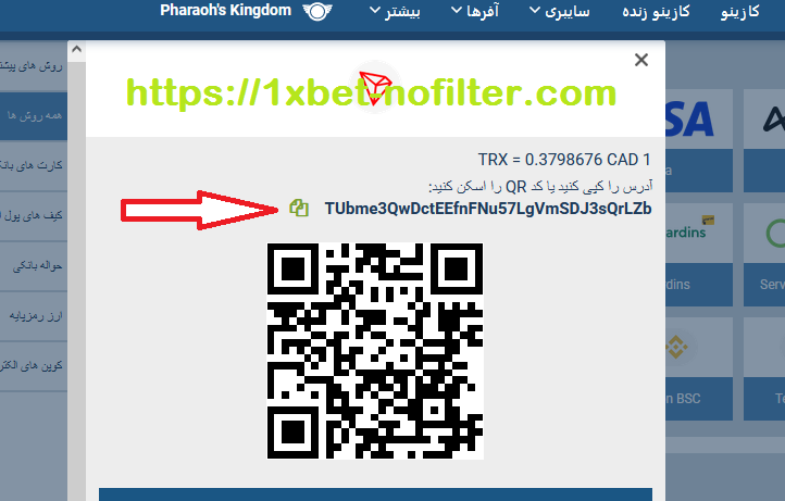 همچنین اگر در ولت تراست ولت خود قبلا ترون خریداری کردید میتونید با اسکن کد QR به سایت وان ایکس بت حساب کاربری خود را شارژ بکنید .